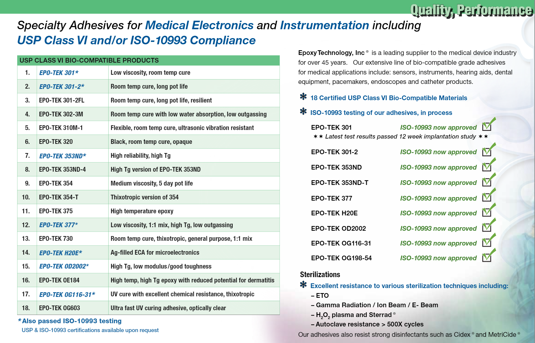 EPO-TEK? 環氧樹脂銀膠符合 ISO 10993 的要求,通常用于:診斷/科學設備?一次性/ IV/ 套管/ 過濾器?內窺鏡和光學系統?輻射探測/成像系統?植入式/非植入式?微流體/生物技術與制藥?手術工具?