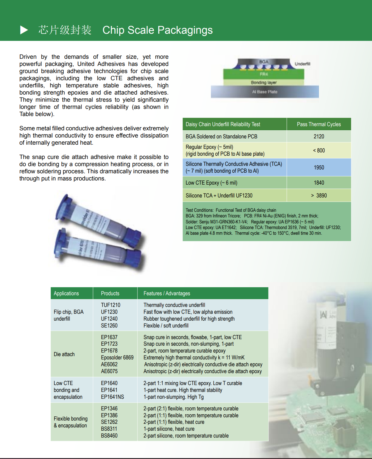 我司是中國唯一代理美國UnitedAdhesives全系列膠,適用于芯片封裝,通訊電子,醫療電子,航空航天,軍工等先進材料